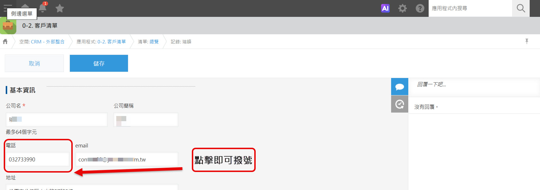 只需點擊kintone中的電話號碼即可撥出電話。