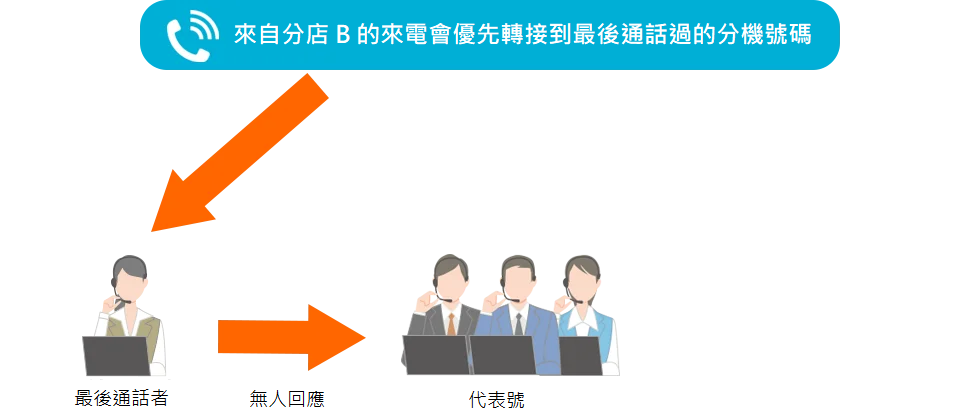 例如,當客戶來電時,可直接接到上次通話的負責人分機,或轉接到事前登記的負責人等。